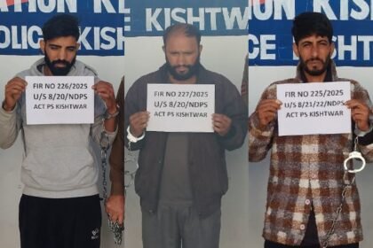 Kishtwar Police intensifies crackdown on drug peddlers; three arrested, heroin, charas & psychotropic capsules seized