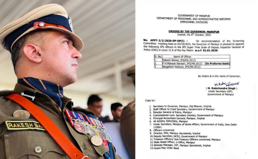 Senior IPS officer Rakesh Balwal, known for his professionalism, integrity, and composed leadership in challenging circumstances, has been promoted to the rank of Deputy Inspector General (DIG) and assigned charge of two of Manipur’s most crucial police ranges — the Greater Imphal Range and the Bishnupur–Churachandpur Range.