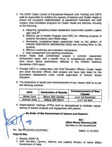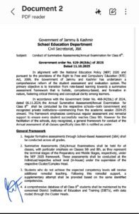 According to Government Order No. 629-JK(Edu) of 2025, issued by Secretary to the Government, School Education Department, Ram Niwas Sharma (IAS), the move aims to replace rote learning with a competency-based, holistic, and formative assessment system designed to promote conceptual understanding and critical thinking among learners.