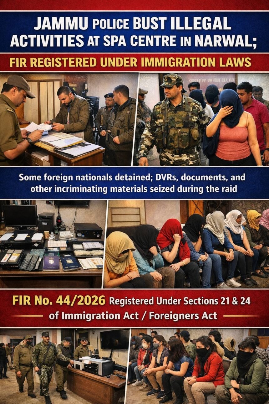 Jammu, Feb 11, 2026: In a major crackdown against illegal and immoral activities, Jammu Police (South Zone) conducted a raid at Shine Spa Centre located in Narwal under the jurisdiction of Police Post Narwal, Sub-Division East, South Zone, Jammu.