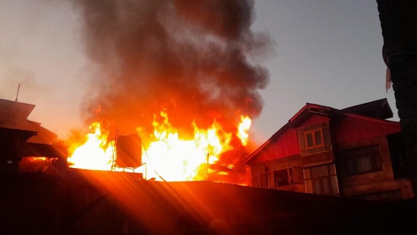 Srinagar, Feb 05: A massive fire erupted in the early hours of Thursday in Srinagar’s Chattabal area, causing extensive damage to a cluster of closely built residential houses, officials said.