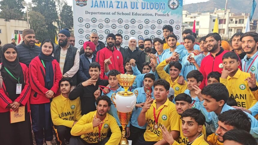 Poonch December 30: The Member of the Legislative Assembly (MLA) for Haveli, Ajaz Jan, presided over the grand concluding ceremony of “PlayFest,” a mega sports extravaganza organized by Zia-Ul-Uloom Higher Secondary School at the Sports Stadium. Addressing the gathering, MLA Ajaz Jan expressed high praise for the students and athletes of Jamia, commending their dedication and competitive spirit. He specifically appreciated the staff, the management of Jamia, and the Principal for their tireless efforts in organizing such a massive platform, noting that fostering sports talent is key to building a vibrant society.