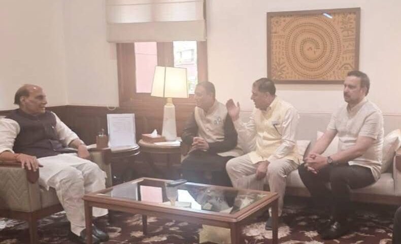 Member of Parliament Sajjad Ahmed Kichloo, along with Hon’ble MPs Chowdary Mohammad Ramzan and Shammi Oberoi, and Hon’ble MLAs Nazir Ahmad Gurezi and Qaiser Jamsheed Lone, called on Defence Minister Rajnath Singh and strongly projected key infrastructure demands concerning strategic road connectivity in Jammu & Kashmir.