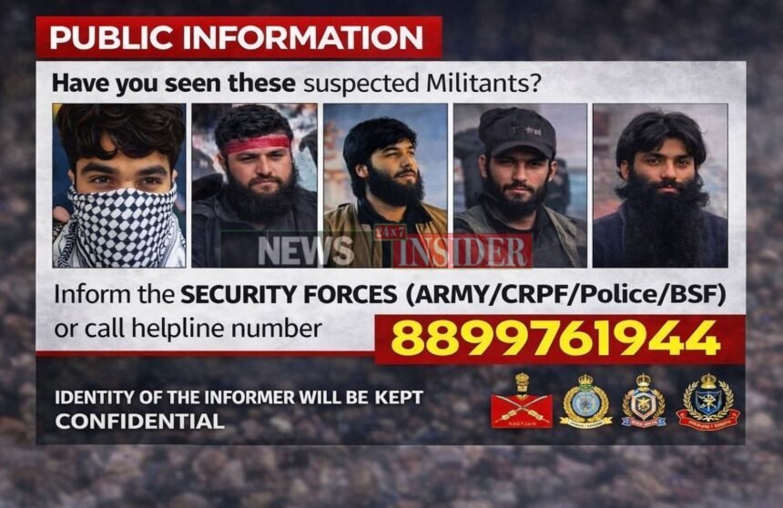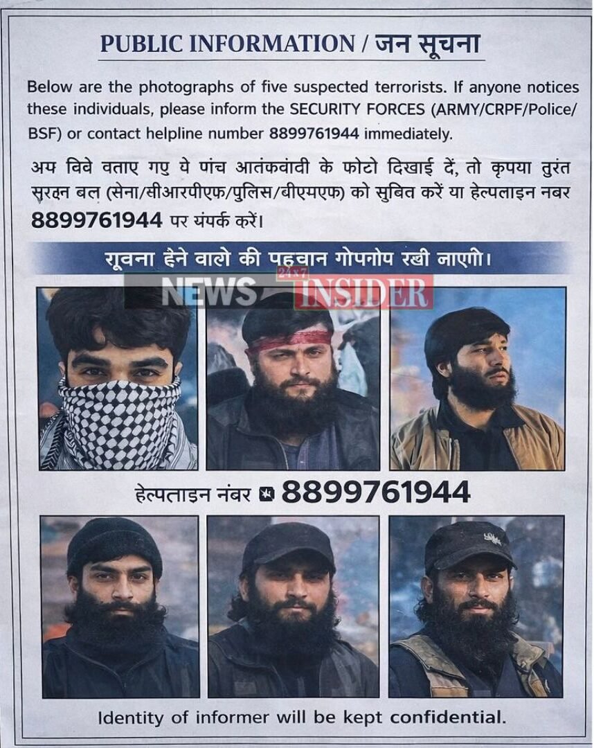 The “Public Information” posters display photographs of five terrorists believed to have infiltrated from Pakistan and are reportedly active in parts of the Jammu region. The posters urge citizens to immediately inform the Security Forces — Army, CRPF, Police and BSF — if they notice any of the individuals. A dedicated helpline number (8899761944) has been issued, with authorities assuring that the identity of informers will be kept strictly confidential.