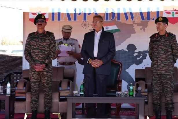 Lt Governor Kavinder Gupta celebrated Diwali with Army personnel of the Fire and Fury Corps at the Rinchen Auditorium in…